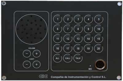 The communication is established by line selection in the master station. A CALL from a talk-back speaker appears in the master as an intermittent green LED in the correspondent line key. Pressing the selection key establishes the communication with the line. Several lines can be selected simultaneously either individually, or all of them at the same time with the ALL key.